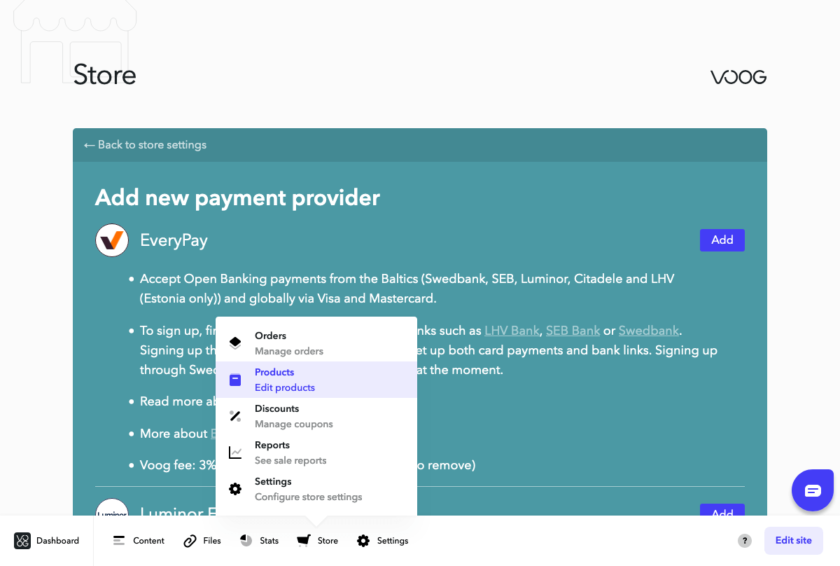 The cost of the website address (domain name) and the monthly or annual Voog subscription.